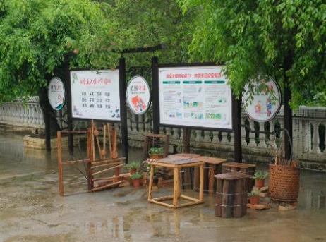 在公益活动中团队师生通过调研,对村内的6处地点提出相应的美化方案。同时收集各村民家的闲置用品(如陶罐、竹篓等)用于后期的方案搭建。