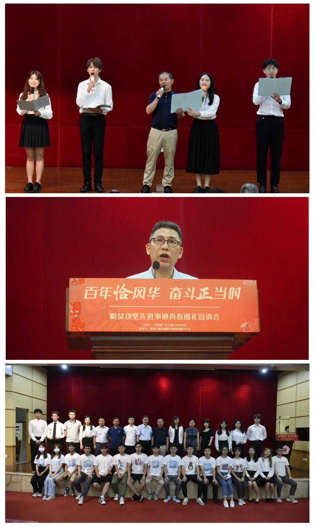 师生在服务脱贫攻坚中作为见证者、参与者、受益者的事迹,引导教育学生深刻认识“中国共产党为什么‘能’”。4月23日,“百年恰风华,奋斗正当时”脱贫攻坚先进事迹的青春巡礼在东风路校区八楼报告厅举行。本次活动由校团委主办、我院团委.学生会承办。