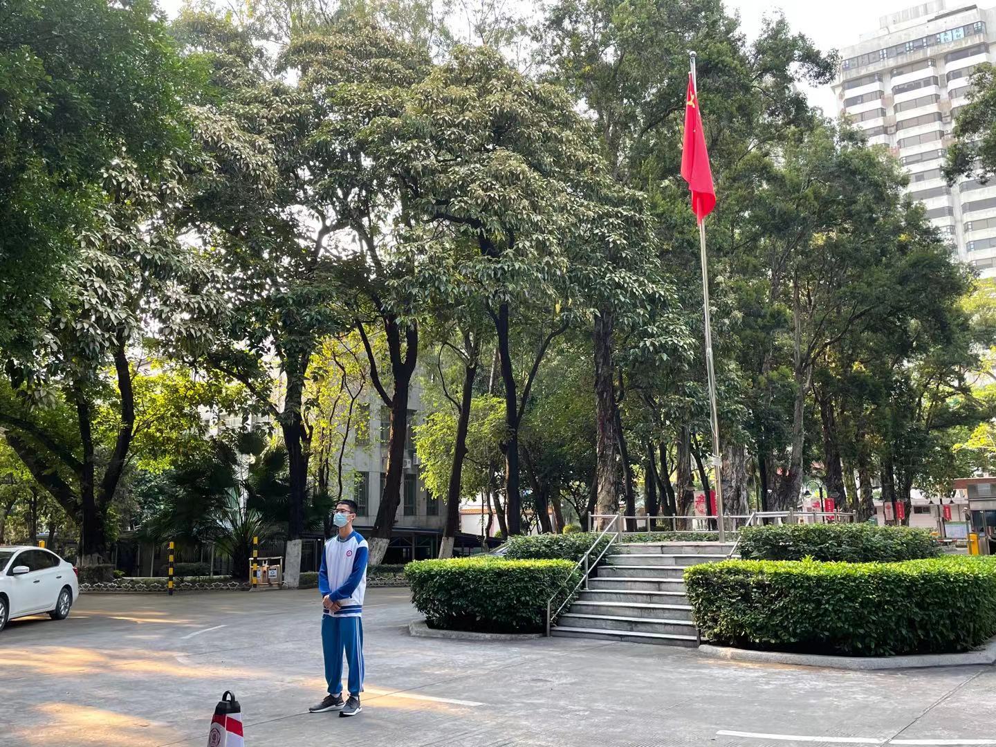 于4月12日早上7:30在东风路校区正门广场举行升旗仪式。学院党建组织员袁晓聪老师,2020级辅导员张梦迪老师,入党积极分子和2020级主要学生干部参加了本次升旗仪式。