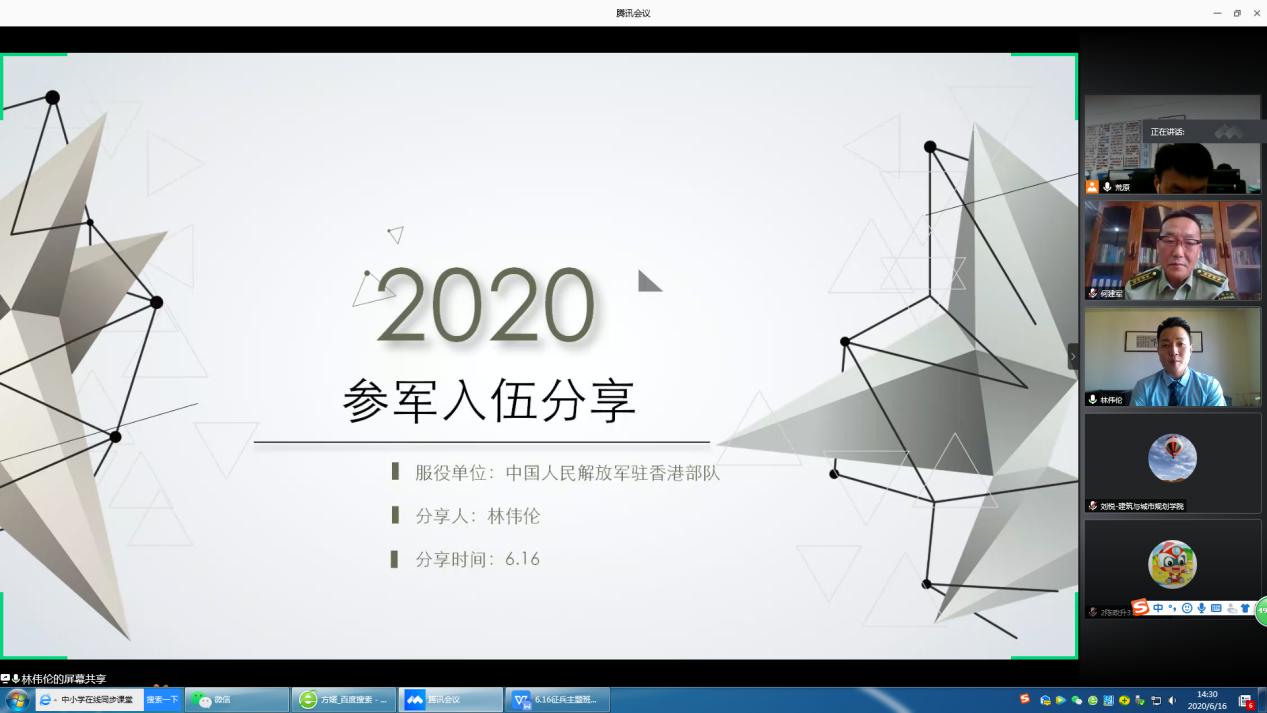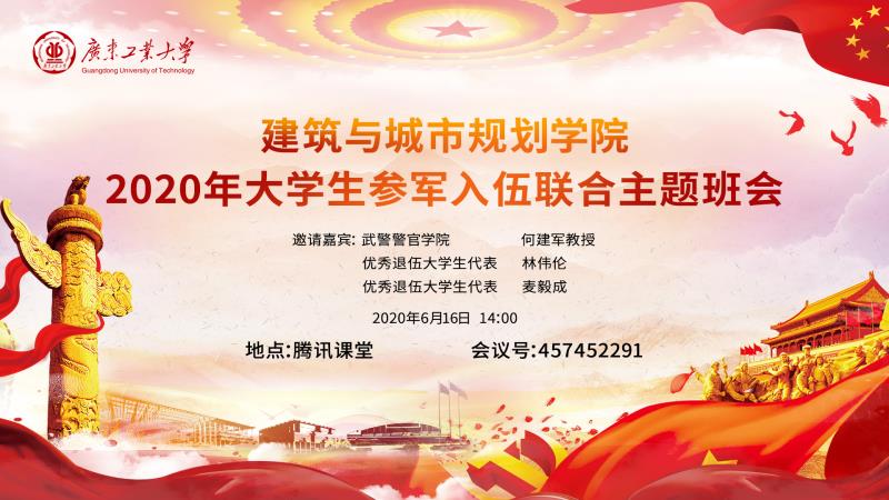 召开2020年大学生参军入伍线上联合主题班会,邀请武警警官学院何建军教授作征兵动员报告。参军退役大学生代表林伟伦、麦毅成,学院党委副书记李晓伟、学院团委书记刘悦和Spbo live score华语版