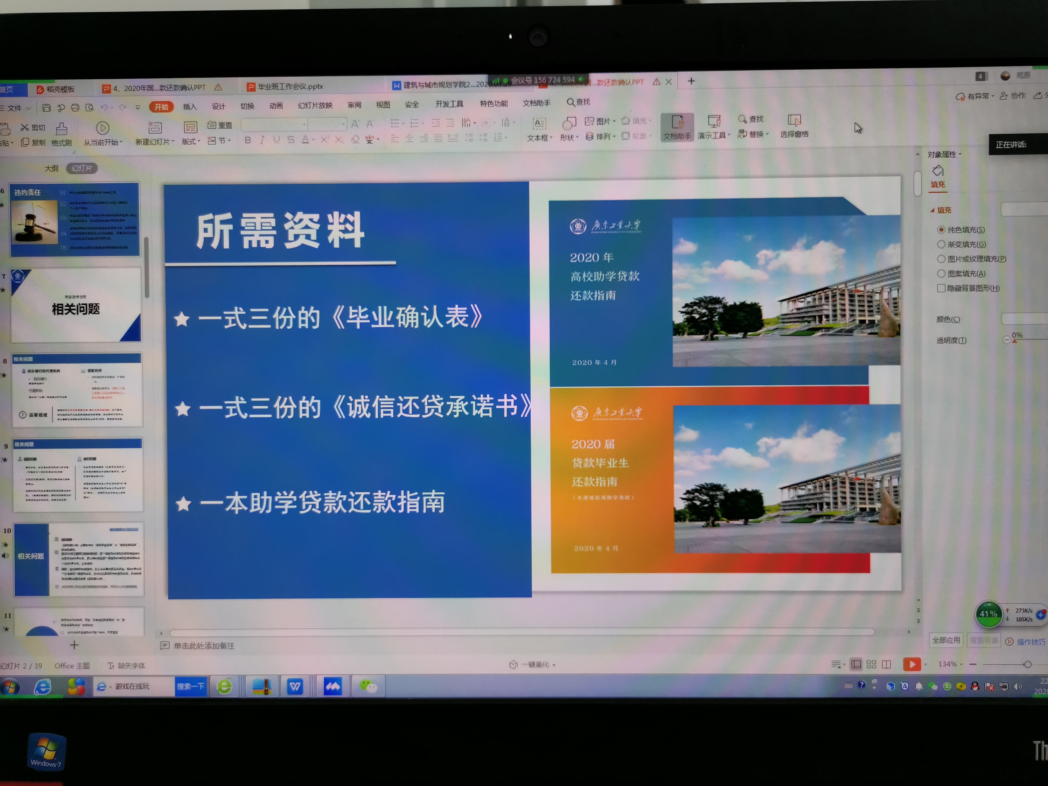 于腾讯会议召开毕业生贷款确认及诚信教育大会,会议由贾朝强老师主持,2020届贷款毕业生参加了会议。