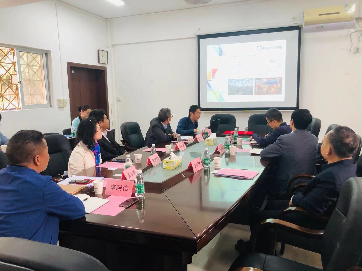 蔡云楠院长介绍了学院发展情况,何韶颖副院长汇报了实践基地建设设想。