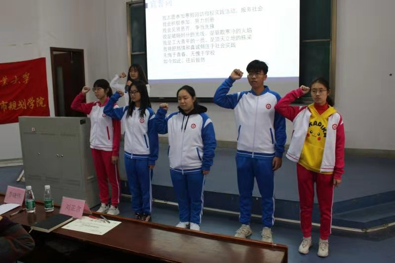 大会在寒假回访母校出征仪式全体同学的宣誓环节中结束:我志愿参加寒假回访母校实践活动,服务社会;我会积极参加,努力创新;我会见贤思齐,争当先锋;我是破晓时分的光线,是驱散寒冷的火焰;我是工大青年的一员,是顶天立地的栋梁;我将把热情和真诚倾注于社会实践;无悔于青春,无悔于学校;如今如此,今后皆然。