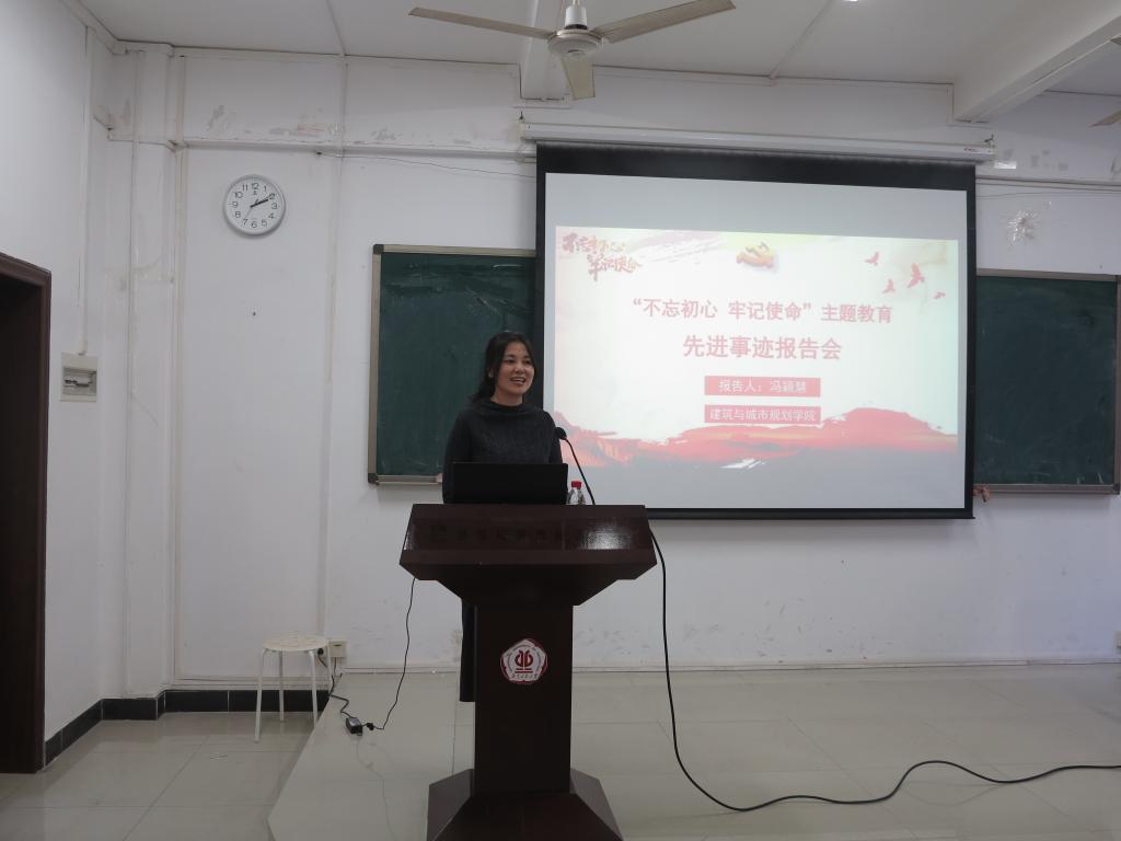10月29日下午2点,冯颖慧校友先进事迹报告会在2号楼314举行。学院全体班子成员、全体教职工(含设计院)及学生党员代表一同听取了报告,报告会由学院党委钟兆明书记主持。