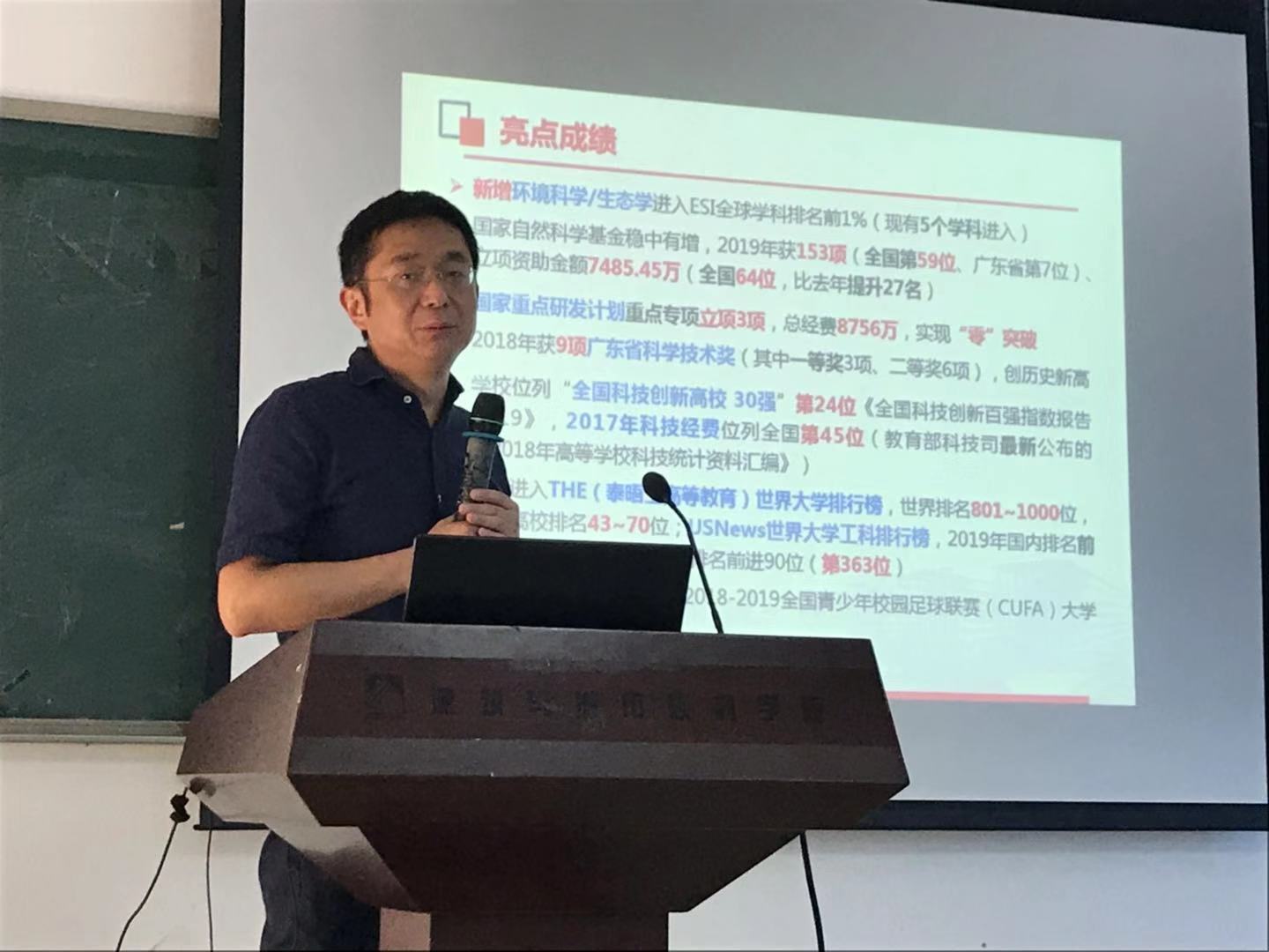 全体教职工要继续团结一致、共同努力,扎实开展“不忘初心、牢记使命”主题教育,围绕学校高水平大学建设目标和粤港澳大湾区建设规划,乘势而上,再创佳绩,为加速推动学校办学实力再提升贡献力量。