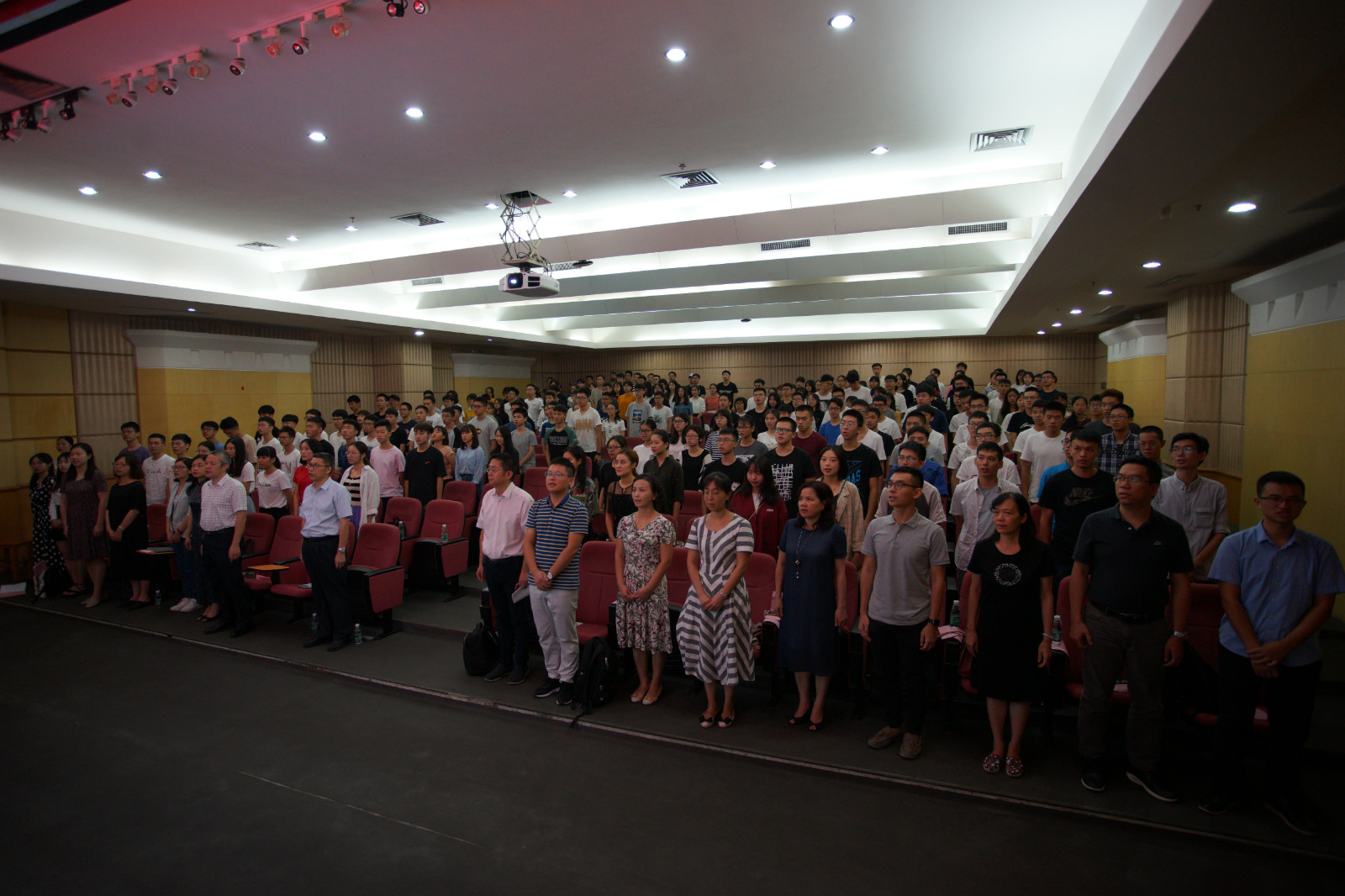 最后,钟兆明书记向2019级全体新生表示衷心的祝贺和热烈地欢迎,同时也对大家寄予厚望。钟书记倡议同学们首先要树立远大的人生理想,钟书记引用习近平总书记的话说:“没有理想信念,就会缺钙,就会得软骨病。”希望同学们不忘初心,牢记使命,把自己的人生价值主动融入到民族振兴和国家进步之中。二是养成勤思善学的好习惯,主动培养科学精神和创新意识,少争分数之多寡,多问学问之有无。三是学会做人做事,钟书记引用陶行知先生所说:“千教,万教,教人求真;千学,万学,学做真人。”钟书记最后代表学院全体教职工向新生们表示衷心的祝愿。