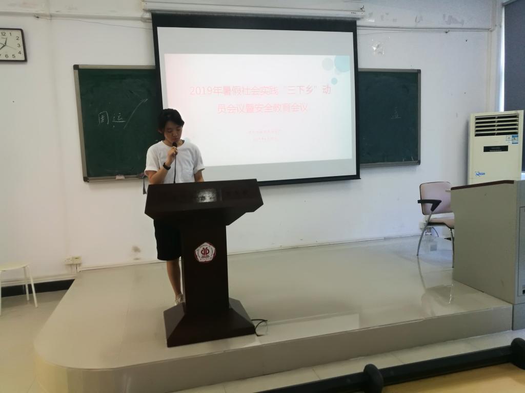 在东风路校区2号楼314室召开2019年社会实践暑期“三下乡”动员会议暨安全教育会议。辅导员贾朝强老师和所有社会实践队队员参加本次会议。
