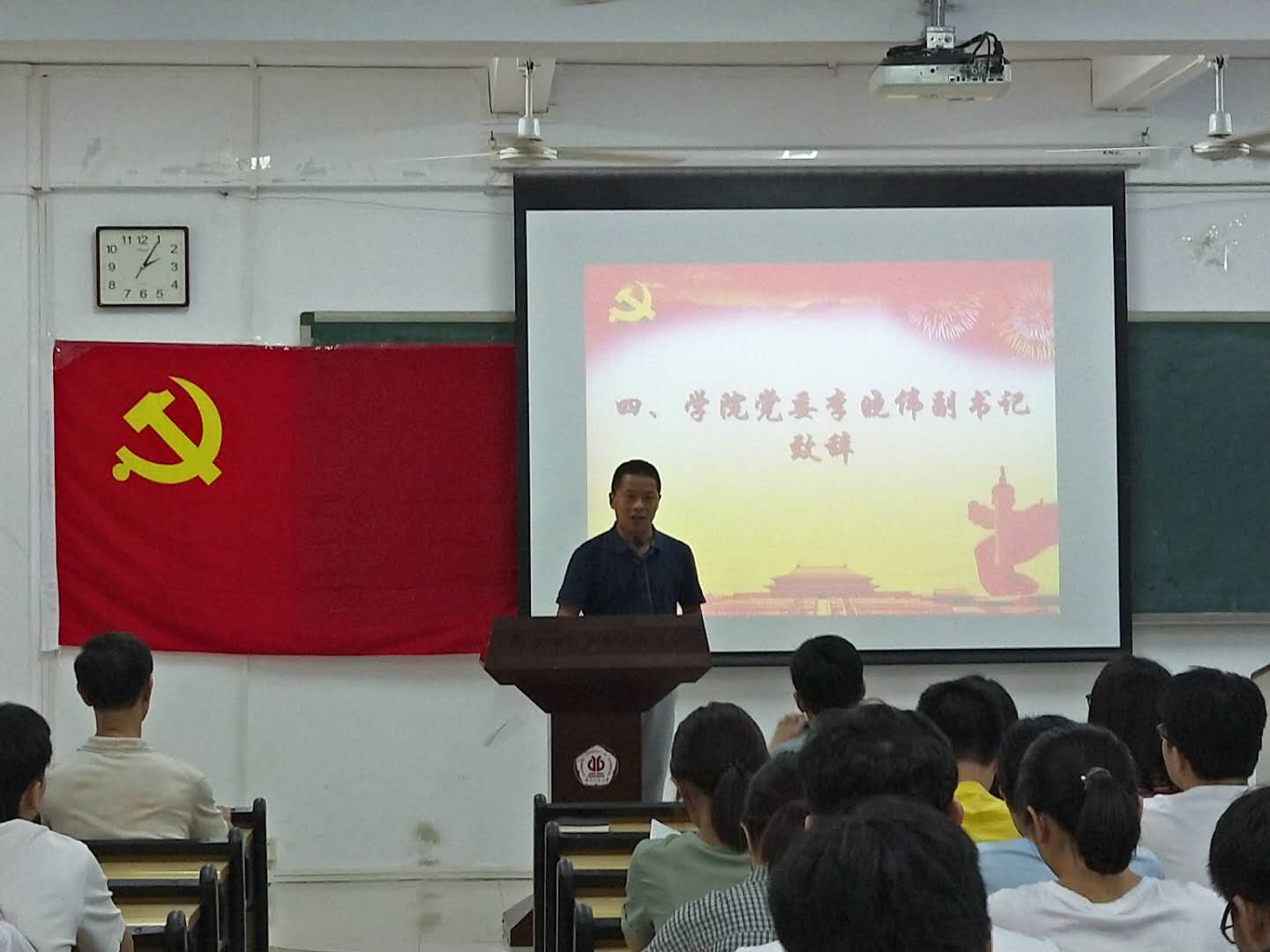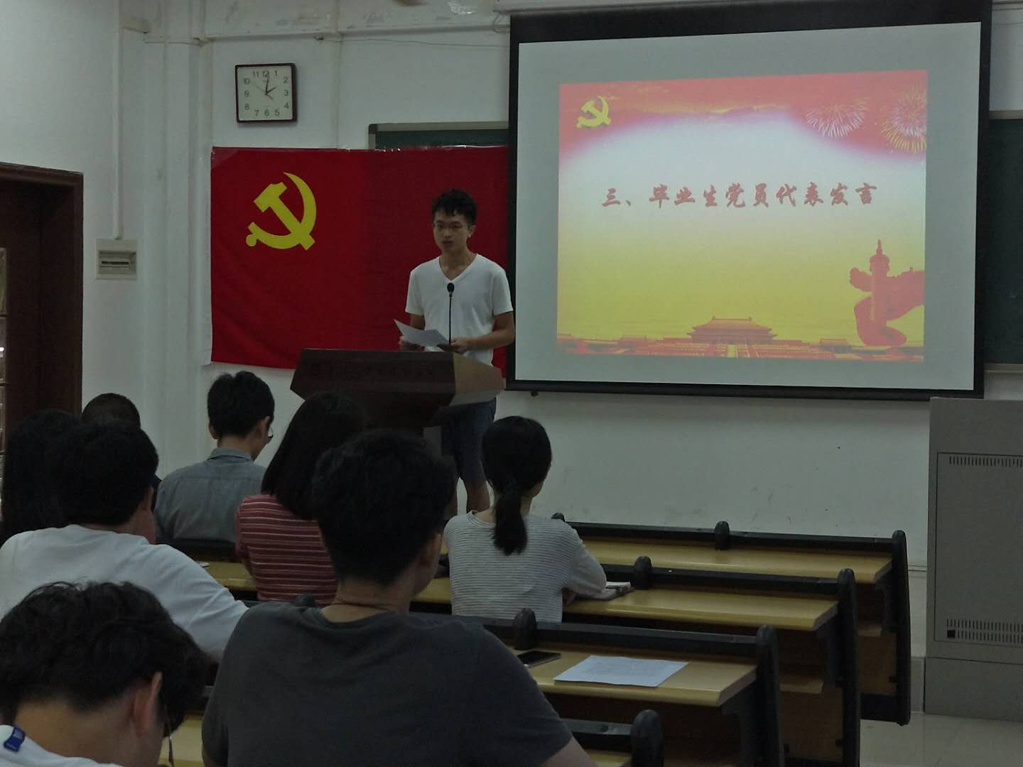 在2号楼314教室举行了2019届毕业生党员大会,重温入党誓词,增强党性教育。学院党委李晓伟副书记,关工委副主任、沙河离退休第一党支部书记庄志强老师,学院党建组织员袁晓聪老师,2019届毕业生党员参加了此次大会。