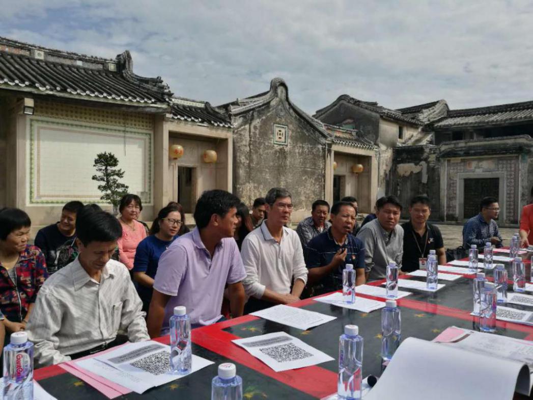 10月18至19日,在省政协的组织下,朱雪梅院长率领工作小组带着初步方案设计成果,跟随省政协调研组前往汕头市澄海区,深入乡间、走村串户,倾听乡亲们的意见和心声。调研组在当地政府相关部门的陪同下,先后前往汕头市澄海区东里镇樟林古港和隆都镇前美村两个各具特色、面临不同问题的乡村展开针对性调研。通过召开村干部、村民座谈会,详细介绍方案成果,深入聆听潮汕传统建筑的材料与工艺、传统民俗,以及宅基地建设中的诉求,收集了村干部、村民们对设计方案的意见和建议。为了更广泛收集民意,工作小组充分利用“互联网+”技术,对设计方案进行问卷调查,请乡亲们扫二维码以便现场征集意见,达到了很好的推广和宣传效果。