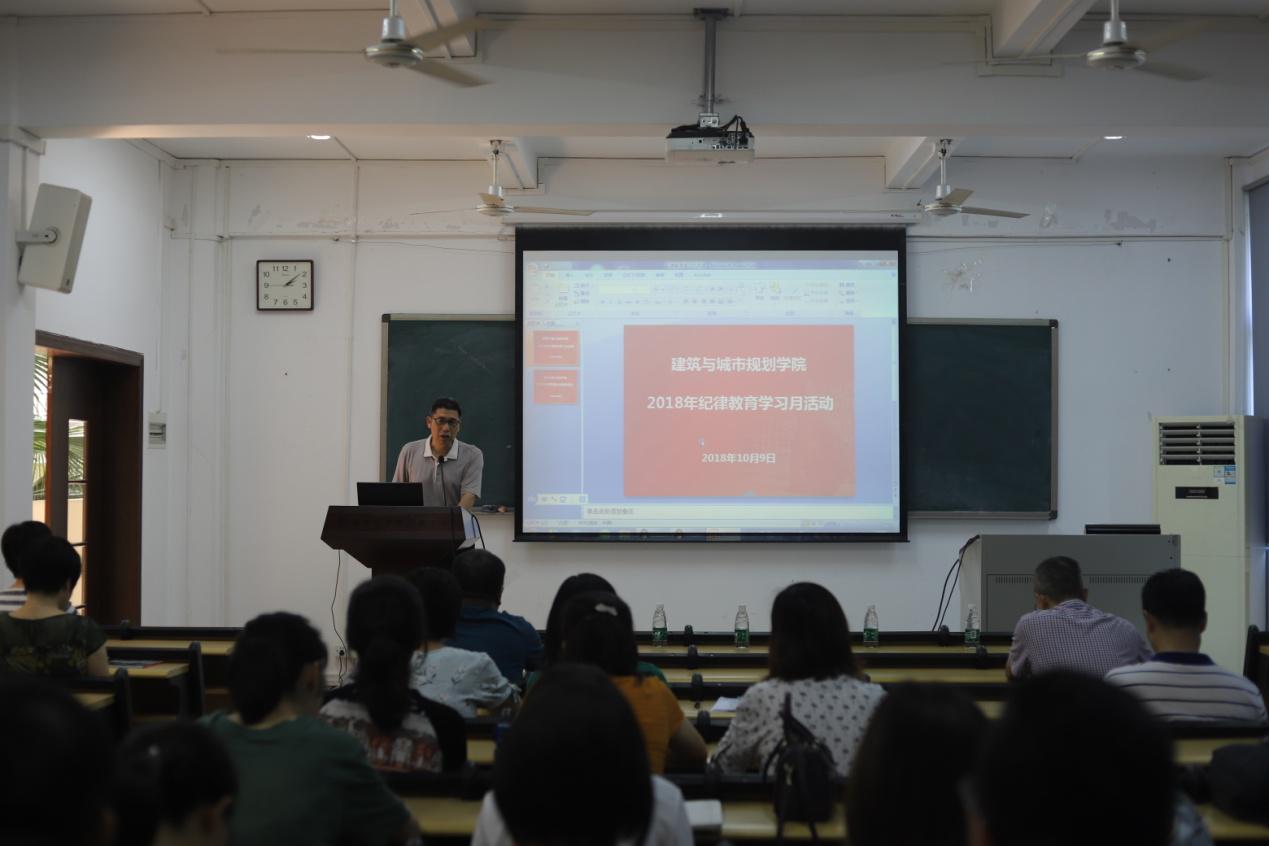在2号楼314室召开全院教工大会,开展纪律教育学习月专题活动,本次会议的主题是观看纪律教育警示片《穷途末路》,会议由学院党委钟兆明书记主持。