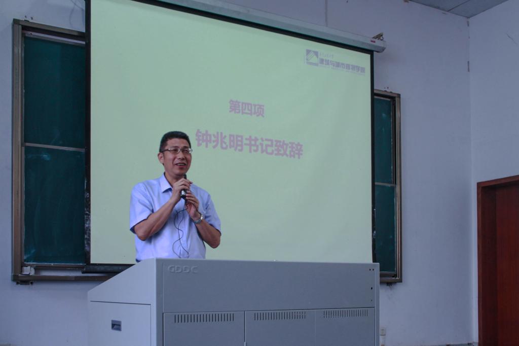 会议的最后环节,钟兆明书记向2018级新生表示衷心的祝贺和热烈地欢迎,同时也对大家寄予厚望。他强调,从入学的第一天开始,要学会从被动转向主动,成为自己未来的主人,要积极地管理自己的学业和将来的事业。他风趣的列举了恒大足球队老将郑智的例子,告诉我们的学生自觉、自律、自信、自强对于每个人的重要性,对新生们谆谆教诲,关切寄语:善于学习,独立思考,懂得做人,学会做事。勉励新同学用智慧和汗水传承学院的光荣和梦想,希望各位新同学能够度过值得骄傲的无怨无悔的大学时光,健康快乐,学业有成!
