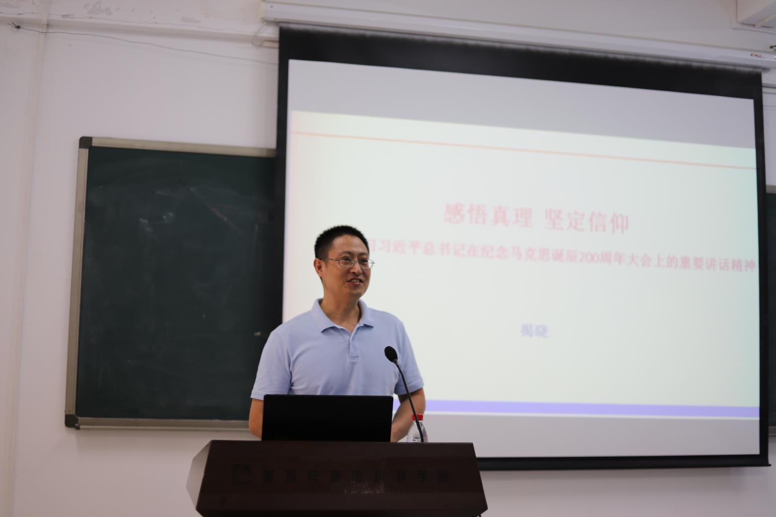 于2018年6月19日下午在学院314会议室召开“感悟真理,坚定信仰——学习习近平总书记在纪念马克思诞辰200周年大会上的重要讲话精神”辅导报告会,报告由马克思主义学院院长揭晓教授主讲。会议由学院党委钟兆明书记主持,Spbo live score华语版