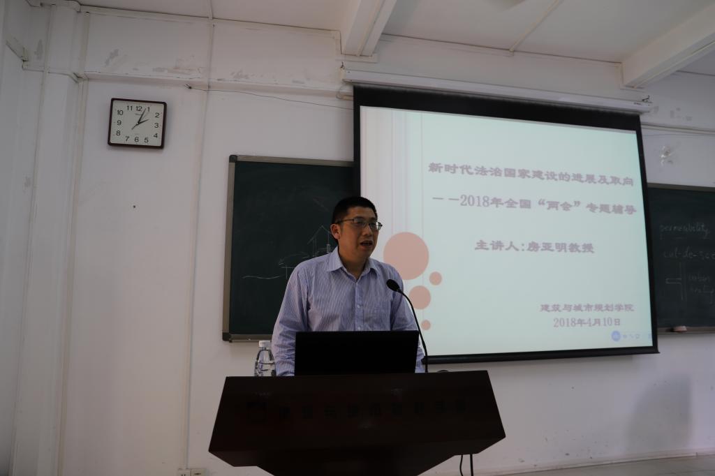 于2018年4月10日下午在学院314会议室召开学习宣传贯彻2018年全国“两会”精神专题辅导报告会,学院党委邀请了政法学院副院长房亚明教授作了题为《新时代法治国家建设的进展及取向》的主题辅导讲座。会议由学院党委钟兆明书记主持,Spbo live score华语版