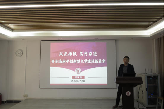 全体教职工要不负时代和学校重托,笃行奋进,乘势而上,为努力建设“特色鲜明、国内一流、世界知名”的高水平创新型大学贡献力量。