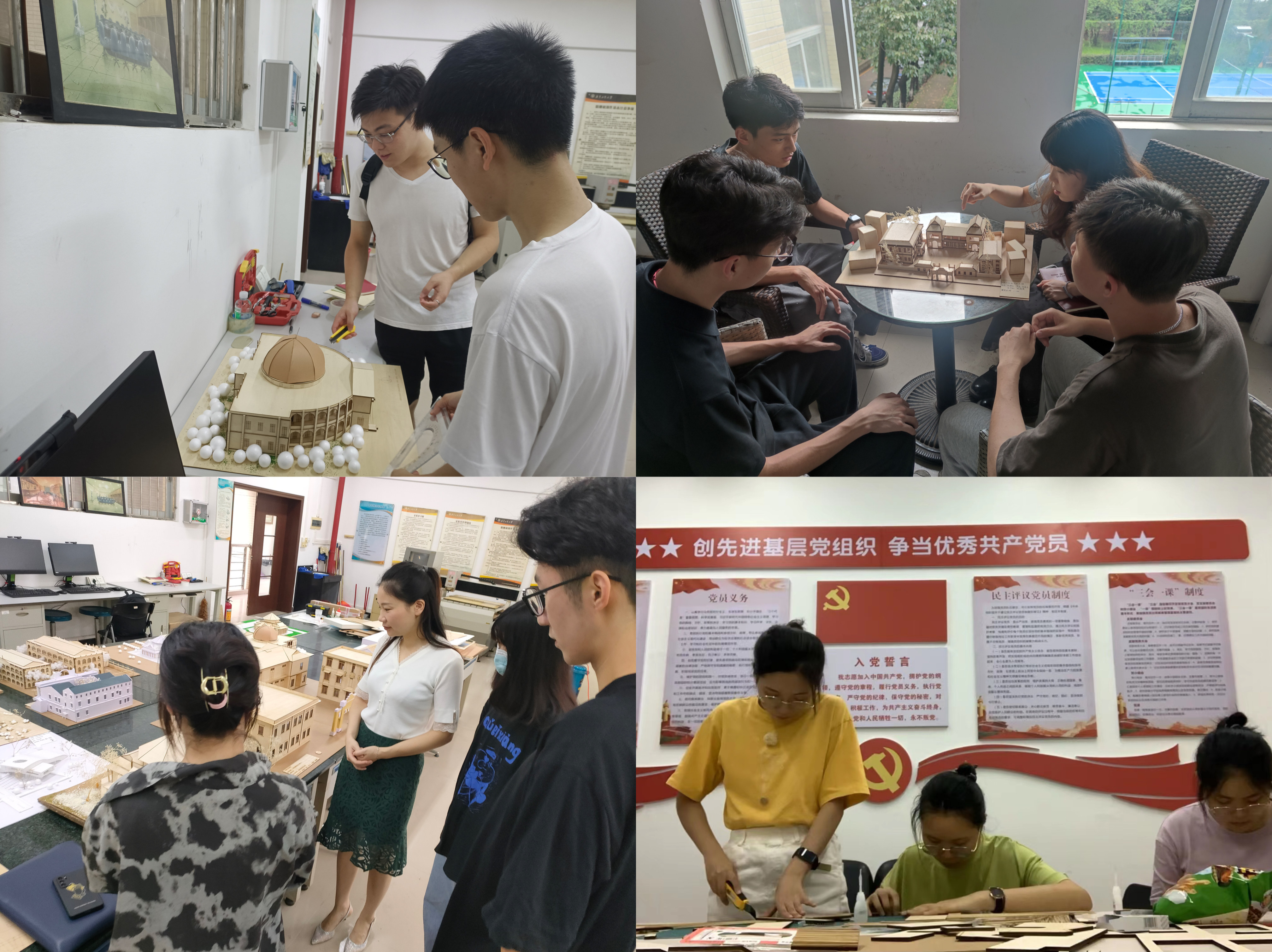 不断探索与专业融合的党史学习教育模式。学院党委深刻认识到,在党的百年奋斗历程中诞生的红色建筑不仅承载了党领导人民实现民族独立、人民解放的光荣历史,也体现着爱国主义情怀和艰苦奋斗的红色精神。挖掘红色建筑本身的历史价值和情感价值,让红色建筑蕴含的红色基因活起来,将对师生党员发挥积极的育人功能。学院党委组织开展“创红色建模,铭百年辉煌”红色建筑建模活动,党员教师指导学生党支部党员、入党积极分子实地走访农讲所、中山纪念堂、中共三大会址、广州起义纪念馆、孙中山大元帅府、广州近代革命历史博物馆等红色建筑,到档案馆查看建筑图纸,运用专业软件建模,按比例搭建实体模型。在创作过程中,学生党员、入党积极分子认真学习红色建筑背后的党史故事,感悟红色精神,与红色历史近距离接触,感受红色建筑艺术之美的同时,加深对党的感情,强化爱党爱国初心,增强党性修养。