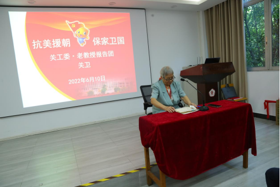 关卫教授1933年出生于佛山南海,在上海长大。解放战争中隶属于中国人民解放军第三野战军第九兵团。抗美援朝战争爆发后她作为第一批中国人民志愿军战士奔赴朝鲜战场,参加了战况极其激烈的长津湖战役,荣立三等功两次。上世纪80年代初任教于广东工业大学社科部。关教授首先向即将走向工作岗位的党员同学表达了亲切关怀,嘱咐同学们要迈好人生关键一步,珍惜光阴,以饱满的精神状态投入新的广阔天地。她饱含感情地讲述了自己在抗美援朝战争中的经历。在党的培养和领导下,当时只有17岁的她在朝鲜战场克服了重重困难,坚决把本职工作做好。虽然人民志愿军在战场上面临着极大的困难,但党领导下的军队却敢于挑战困难、迎难而上、不畏强敌、敢于亮剑。在部队中,共产党员总是处处做表率。在后勤补给困难的时候,共产党员带头让出自己的一份口粮,让年轻的小战士先吃。在战斗间隙,共产党员利用休息时间带领战士们学文化。在战斗中,她亲眼目睹身边的战友在共产党员的带领下发起一次又一次冲锋。在最艰难的时刻,都是共产党员率先站出来参加突击战斗。为了党和人民的利益,她身边有很多优秀的共产党员献出了宝贵的生命。说到动情处,关教授哽咽了,眼里闪烁着晶莹的泪花。最后,关教授对同学们提出三点期望:一是要坚定理想信念,牢记党的初心使命;二是要涵养家国情怀,勇担时代责任与使命;三是要有不惧艰难勇向前、顽强拼搏敢争先的勇气。