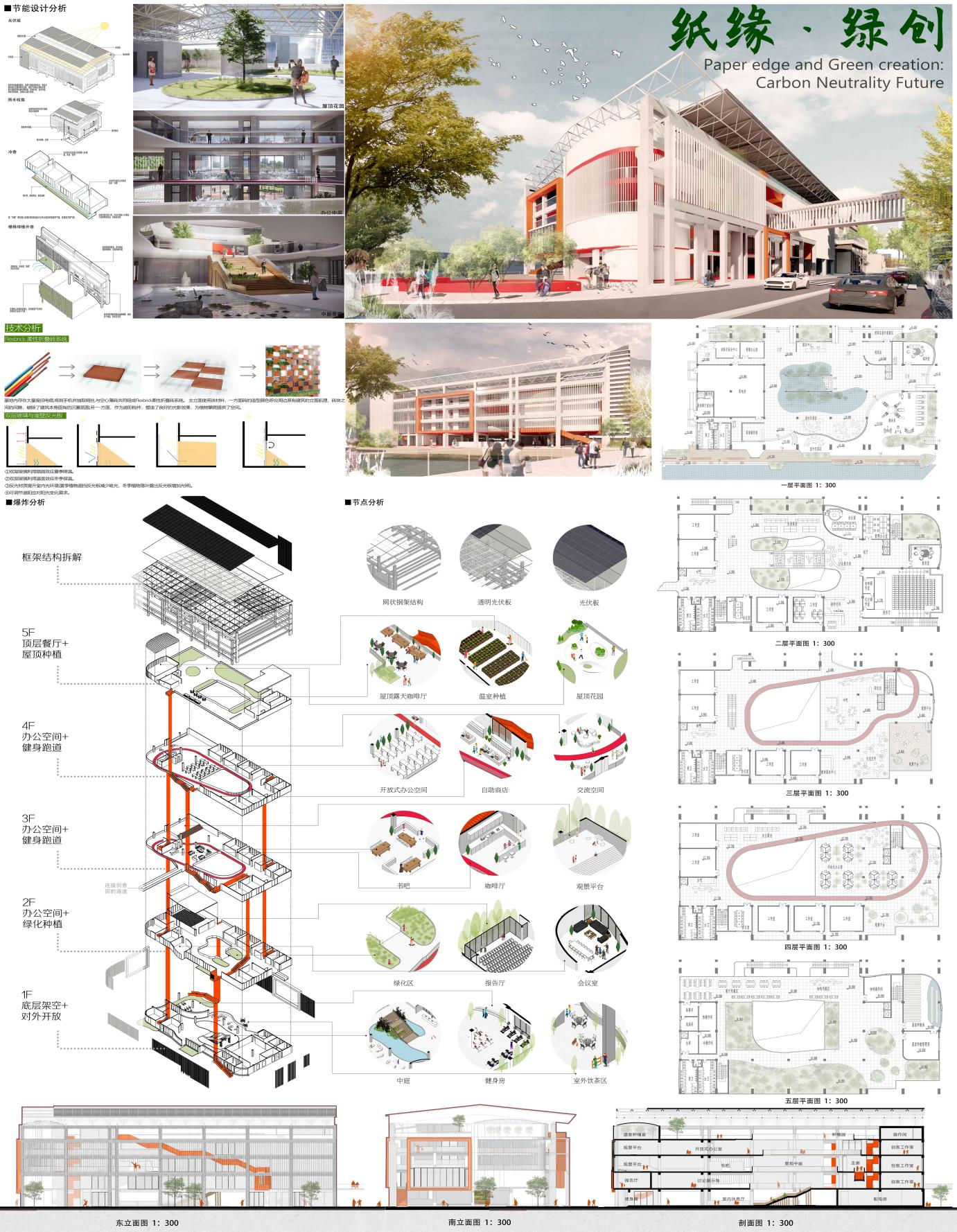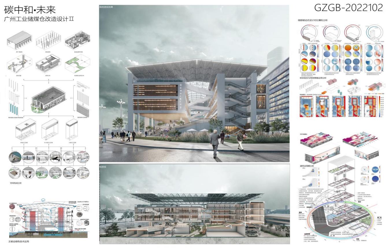跨学校师生联合创作作品《碳中和·未来广州工业储煤仓改造设计》[指导老师:梁锐(广东工业大学)、杨毅(浙江大学),小组成员:郑细川(广东工业大学)、张钧涵(浙江大学)]获最佳创意方案奖;学院师生作品《纸缘·绿创》(指导老师:吉慧、林瀚坤、邓寄豫,小组成员:吴树祺、叶碧珊、陈小雨、谢梓晖、曾齐宁)获入围奖。
