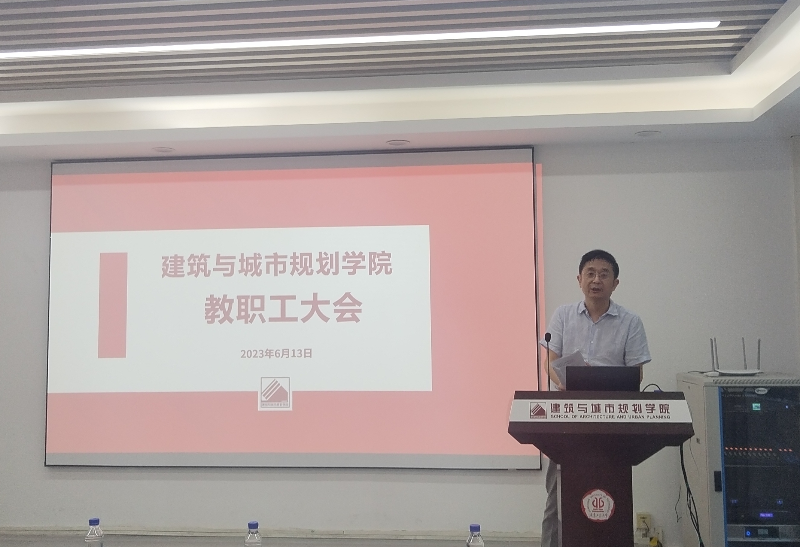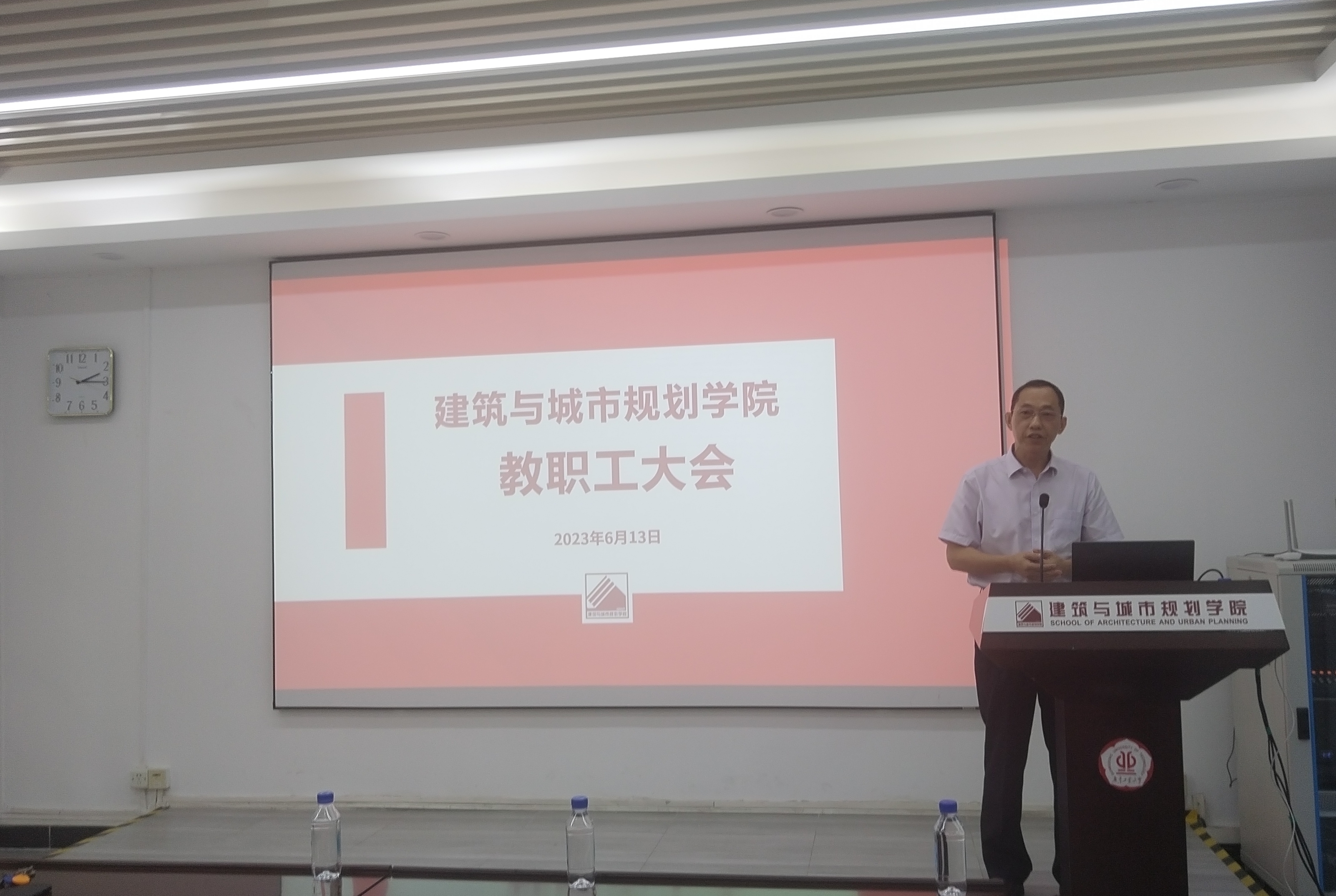 学院副院长何韶颖对本学期建筑学、城乡规划教育部教学教育评估工作进行了总结,对近期青年教师教学竞赛、期末监考等工作进行了布置。
