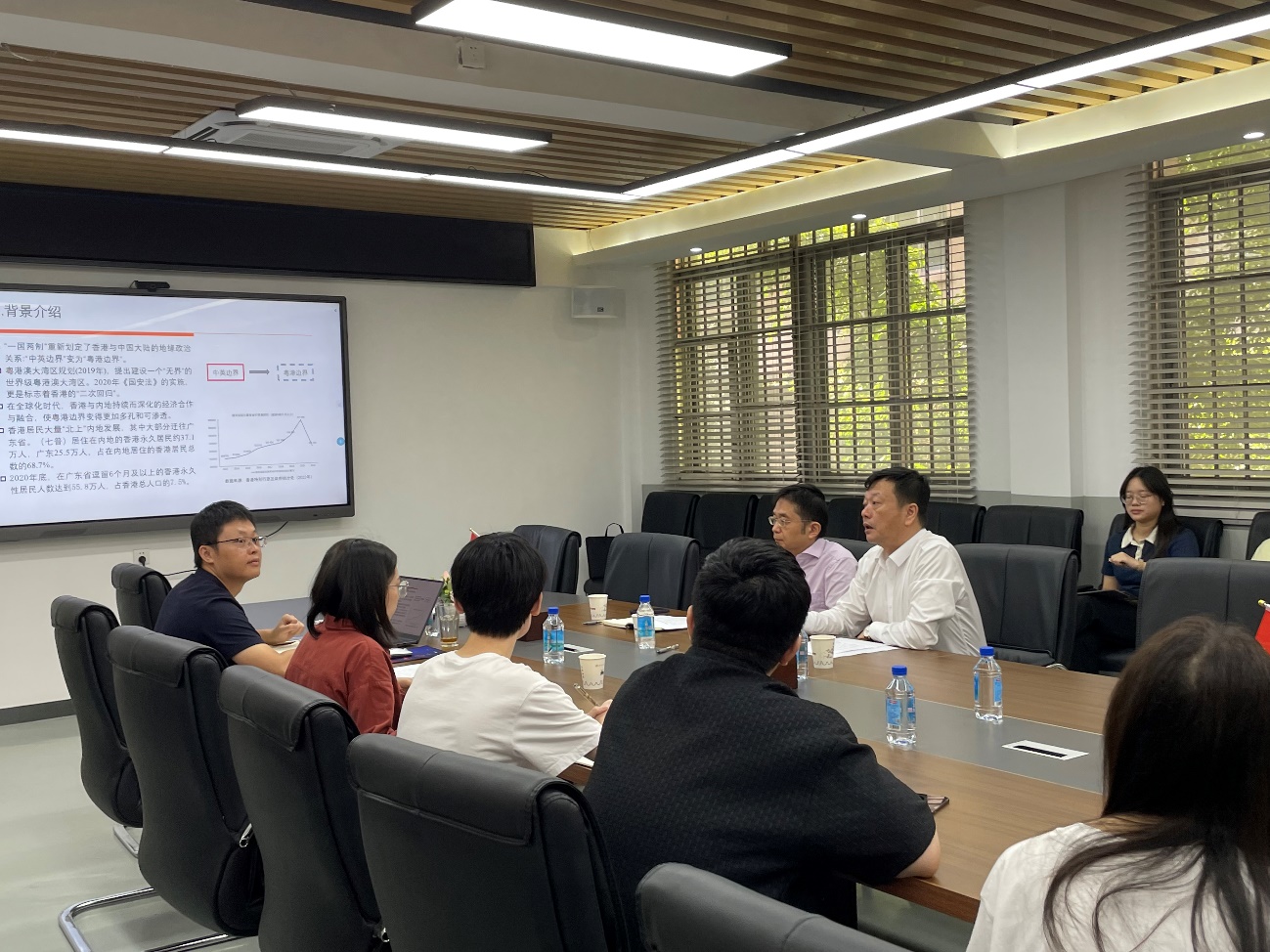 关于粤港融合和粤港澳大湾区建设方面的课题研究情况,内容涉及课题研究的背景、研究目标、研究内容、研究方法、初步成果和未来的研究计划等情况。随后张学理分享了自己对粤港融合发展和粤港澳大湾区建设的看法与见解。张学理指出,习近平总书记今年4月份到广东考察时强调要“使粤港澳大湾区建设成为新发展格局的战略支点、高质量发展的示范地、中国式现代化的引领地”,阐明了粤港澳大湾区在全国新发展格局中的重要战略地位。我们开展科学研究不仅要从学术角度看待粤港澳大湾区,更要关注国家的最新政策动态,以更高位的视角深入了解和领悟粤港澳大湾区建设的必要性及深层原因,深刻理解粤港澳大湾区建设的意义。张学理同时鼓励师生积极参与创新创业活动,加强跨学科的交流。