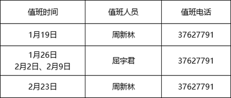 1、教职工:1月19日(星期二)至2月25日(星期四)。