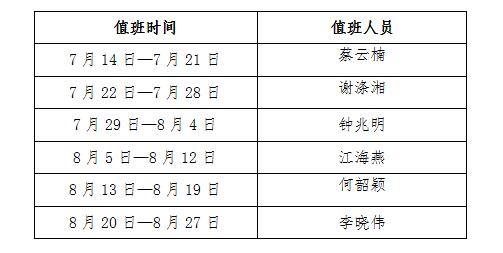 2、教职工:7月14日(星期二)至8月27日(星期四)。
