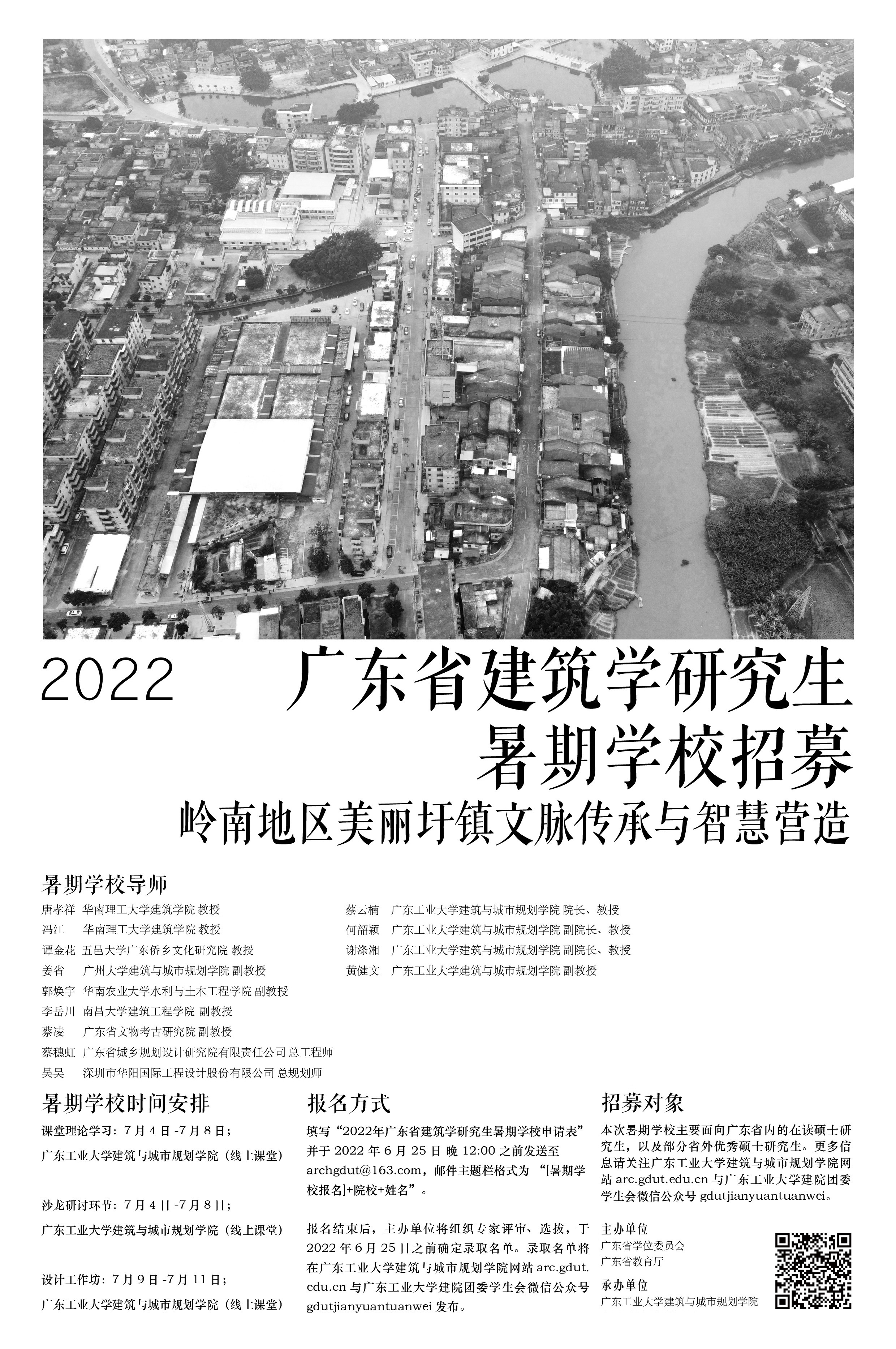 本次暑期学校以岭南地区美丽圩镇文脉传承与智慧营造为主题,以理论研究和分析能力培养为主要目的,通过理论学习和分析实践对参与者进行理论与实操能力的系统与强化培养,探索研究生教学新模式,为岭南地区经济与文化发展和地方乡村振兴工作培养所需的高水平人才。