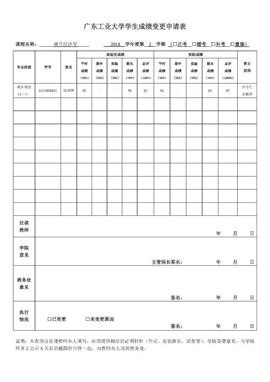 备注:公示期内,如对上述成绩变更有异议,请与学院教务办联系(电话:37627592,地址:东风路校区1-302)