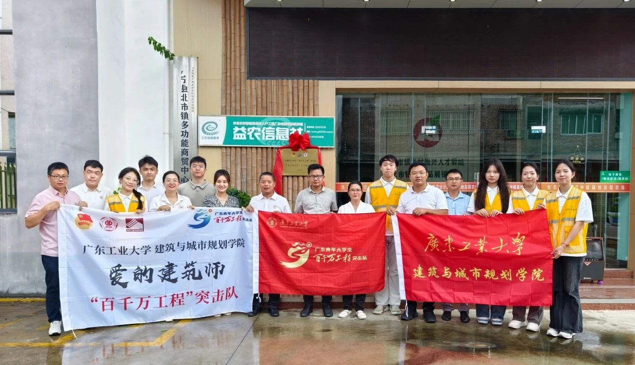 2024年7月12日下午,广东青年大学生“百千万工程”突击队行动广东工业大学·广宁县工作站揭牌仪式在肇庆市广宁县北市镇乡村振兴服务站举行。学院党委副书记李晓伟、学院团委书记赵天阳、城市规划系副主任吴蓉、广东工业大学建筑设计研究院有限公司三所所长何政康、北市镇党委副书记林伟康、镇团委书记董连金、镇团委副书记李健豪等出席仪式。参加活动的还有北市镇团委、赴北市镇“百千万工程”突击队师生代表。