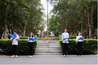 “朋友!中国是生育我们的母亲。”学生代表张钺一、陈紫茵、邓皓、唐雅诗朗诵《可爱的中国》。同学们充满感情的朗诵,激励着在场的每一个人,在新时代的征程中,勇担使命,奋发图强,为实现中华民族伟大复兴的中国梦贡献自己的力量。