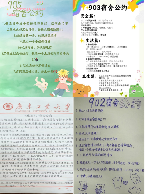 (图为 宿舍代表现场展示及部分宿舍公约)