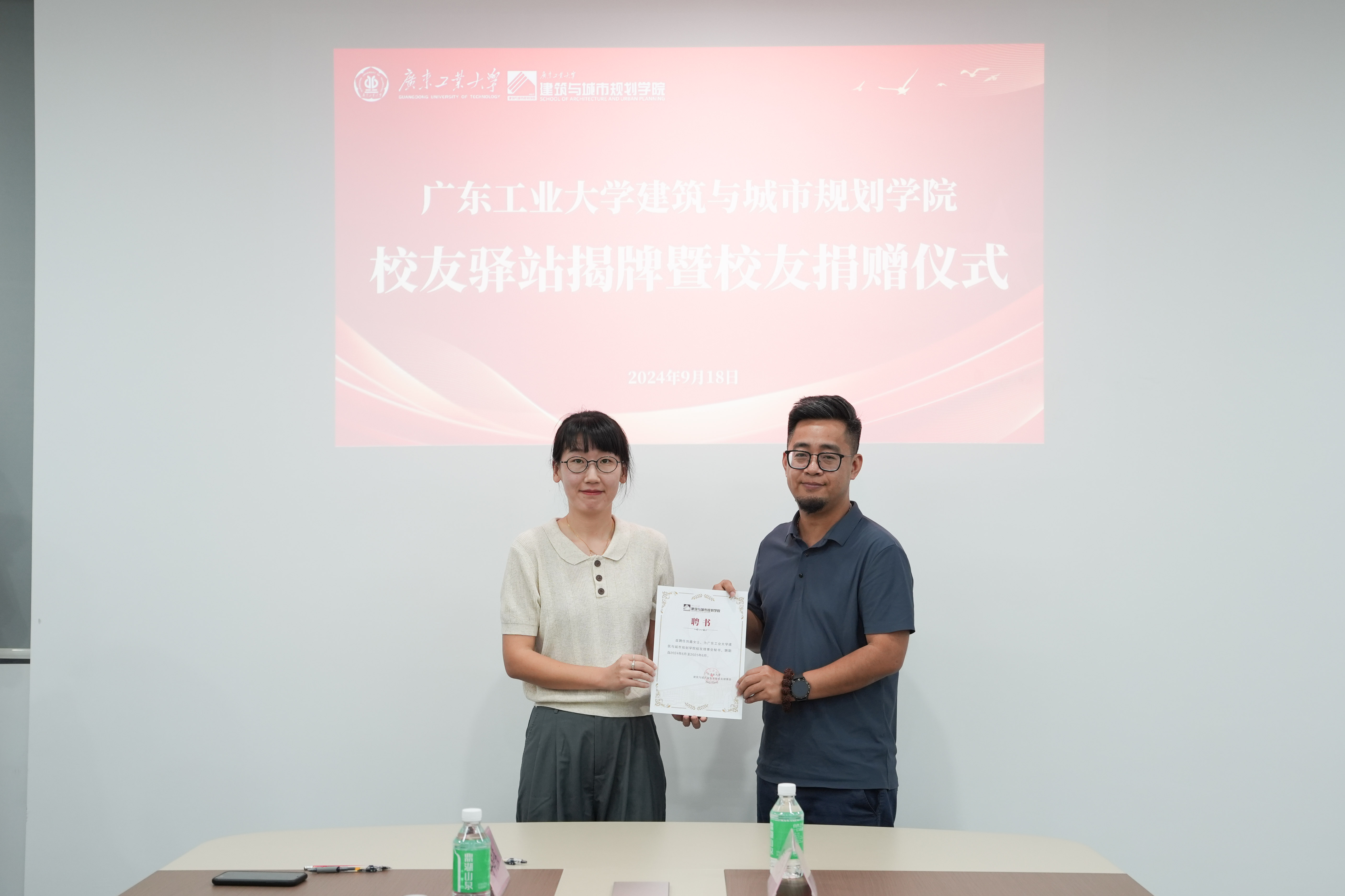 会上,陈文都还向校友秘书刘鑫颁发聘书。