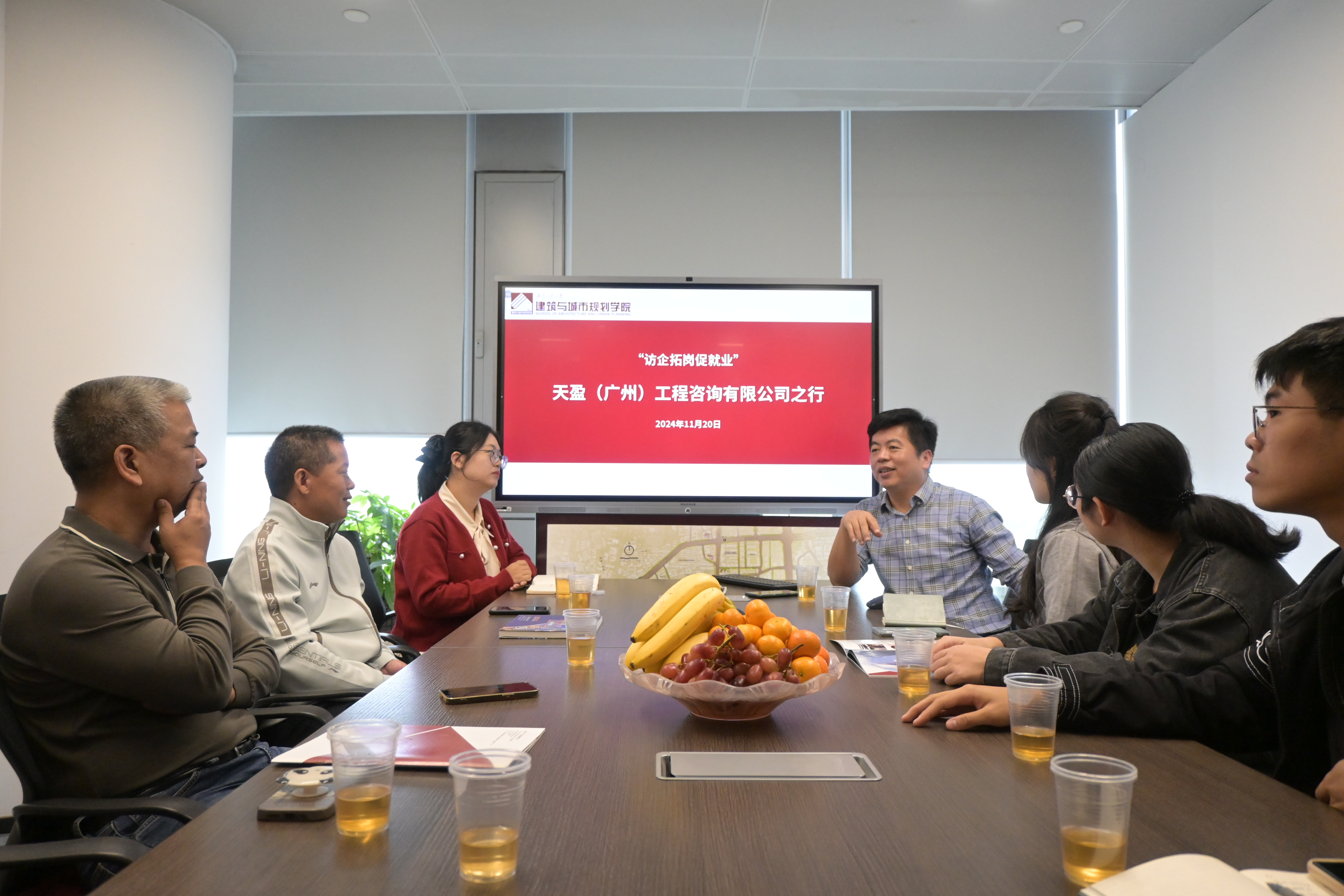 11月20日,Spbo live score华语版 党委副书记李晓伟、建筑设计研究院院长陈海清、学院团委书记赵天阳、校友秘书刘鑫和学生代表等师生一行,到天盈(广州)工程咨询有限公司开展访企拓岗促就业行动,走访1995届建筑学校友吴立瑞。